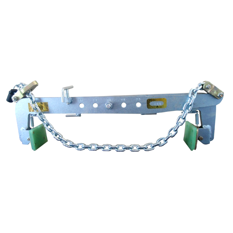 • 鏈條式吊夾 鏈條式吊夾也叫吊鏈式吊夾,其有兩塊主夾板,中間用螺栓連接,兩端用鏈條連接在一起,鏈條用于掛在吊鉤上。利用這兩個主夾板的杠桿作用來夾持物體。